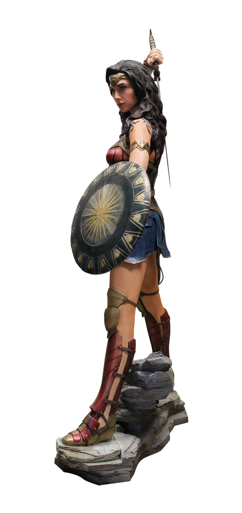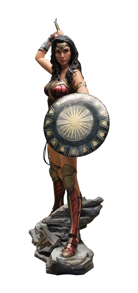 From DC's wildly successful WONDER WOMAN film comes this beautiful, lifelike statue of our favorite Amazonian Warrior. Posed like we see her in one of the film’s key scenes, this life-sized replica is a beauty to behold and captures the sheer beauty and ferociousness alike of the character, as portrayed by actress Gal Gadot. Comes with a thematic base including the film’s logo.