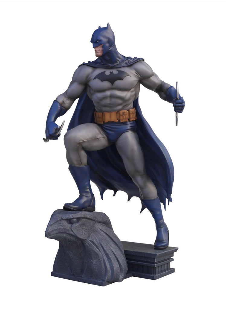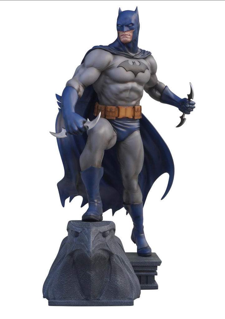 From the brilliant 2002 fan-favorite BATMAN: HUSH comic book series, written by Jeph Loeb and pencilled by the legendary Jim Lee, which was followed by the animated film adaptation in 2019, comes this life-size statue of The Dark Knight. Cast in fiberglass and towering on a Gotham City gargoyle base, ready to strike with 2 Bat-A-Rangs in his hands, Batman's cape is flowing, as he is sternly looking focused on the battle ahead.
